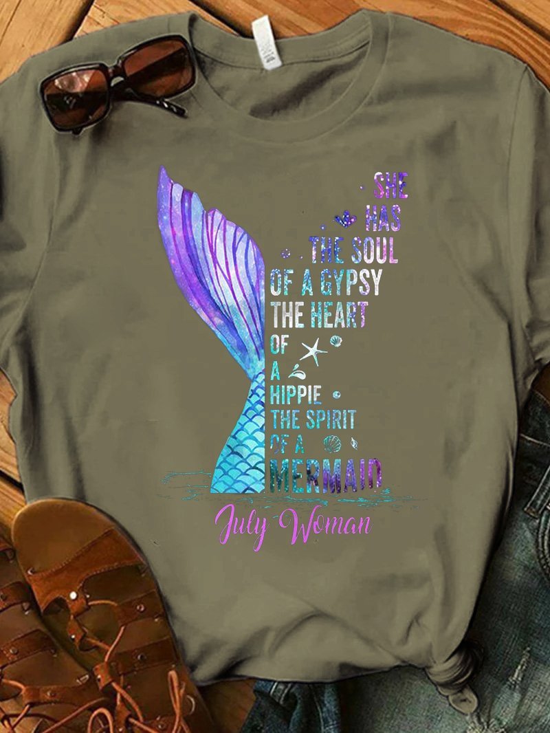 Dazzling Fishtail Letter Print T-shirt