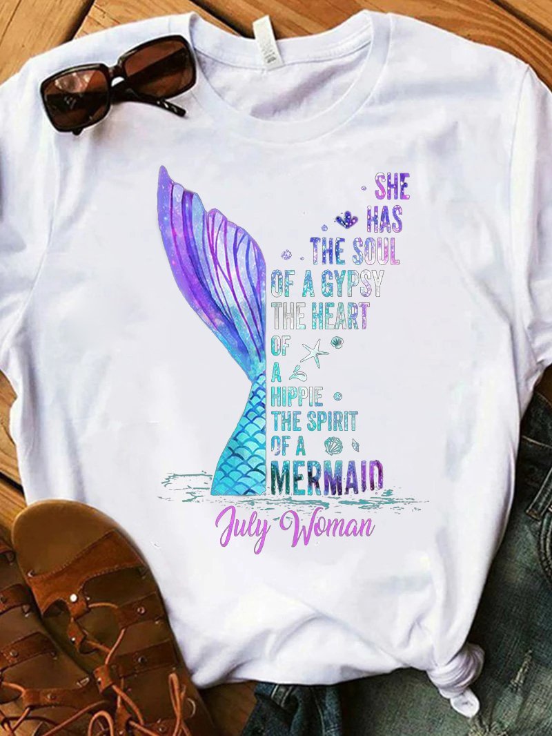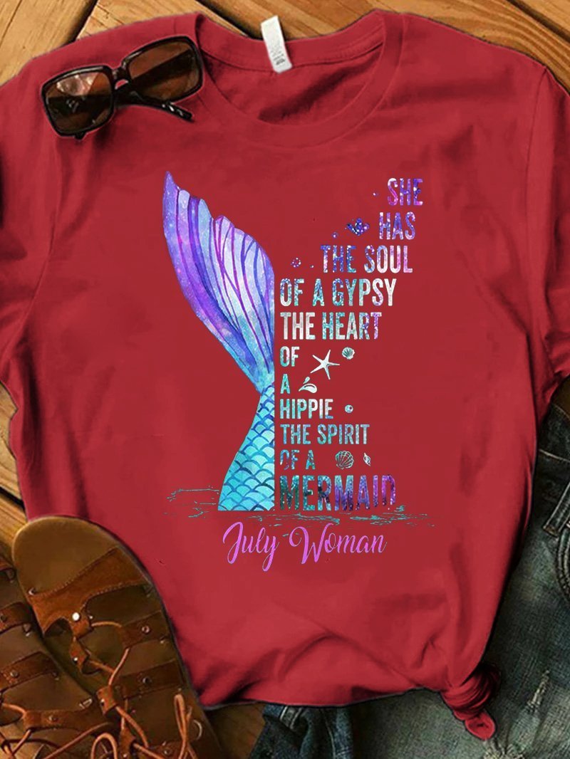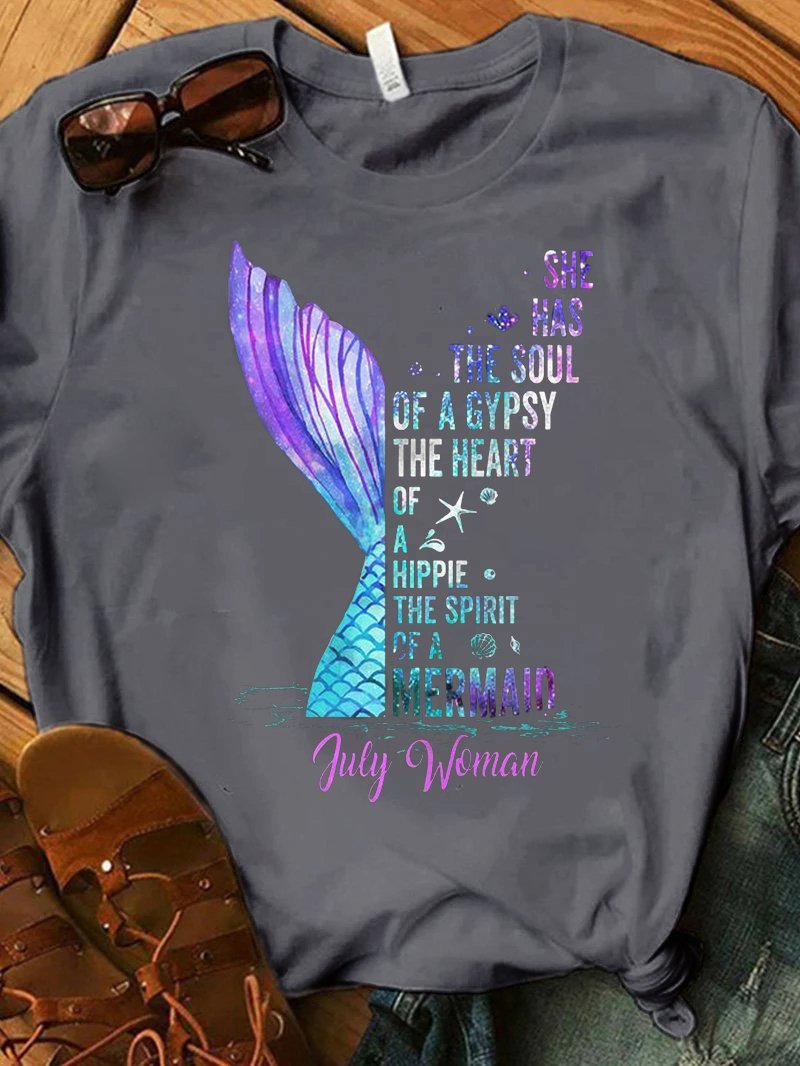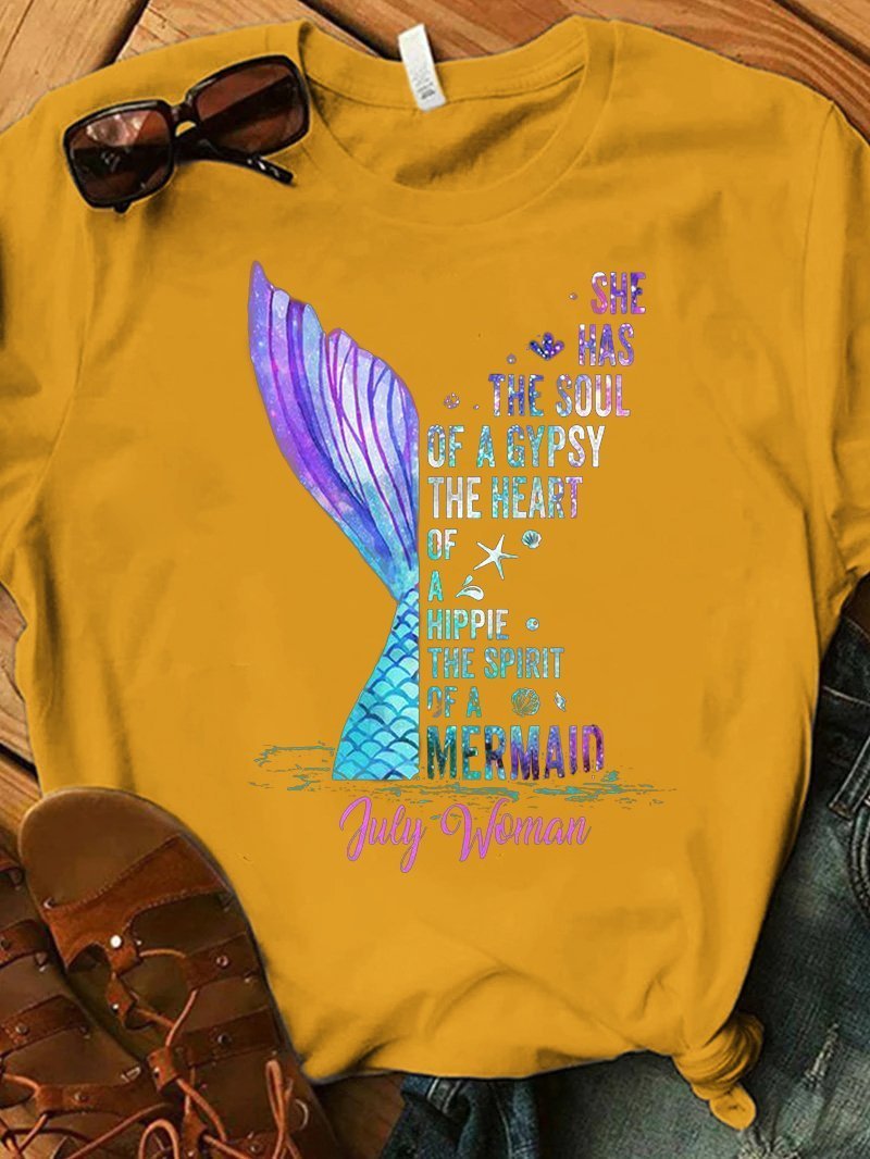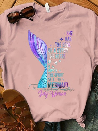 Dazzling Fishtail Letter Print T-shirt