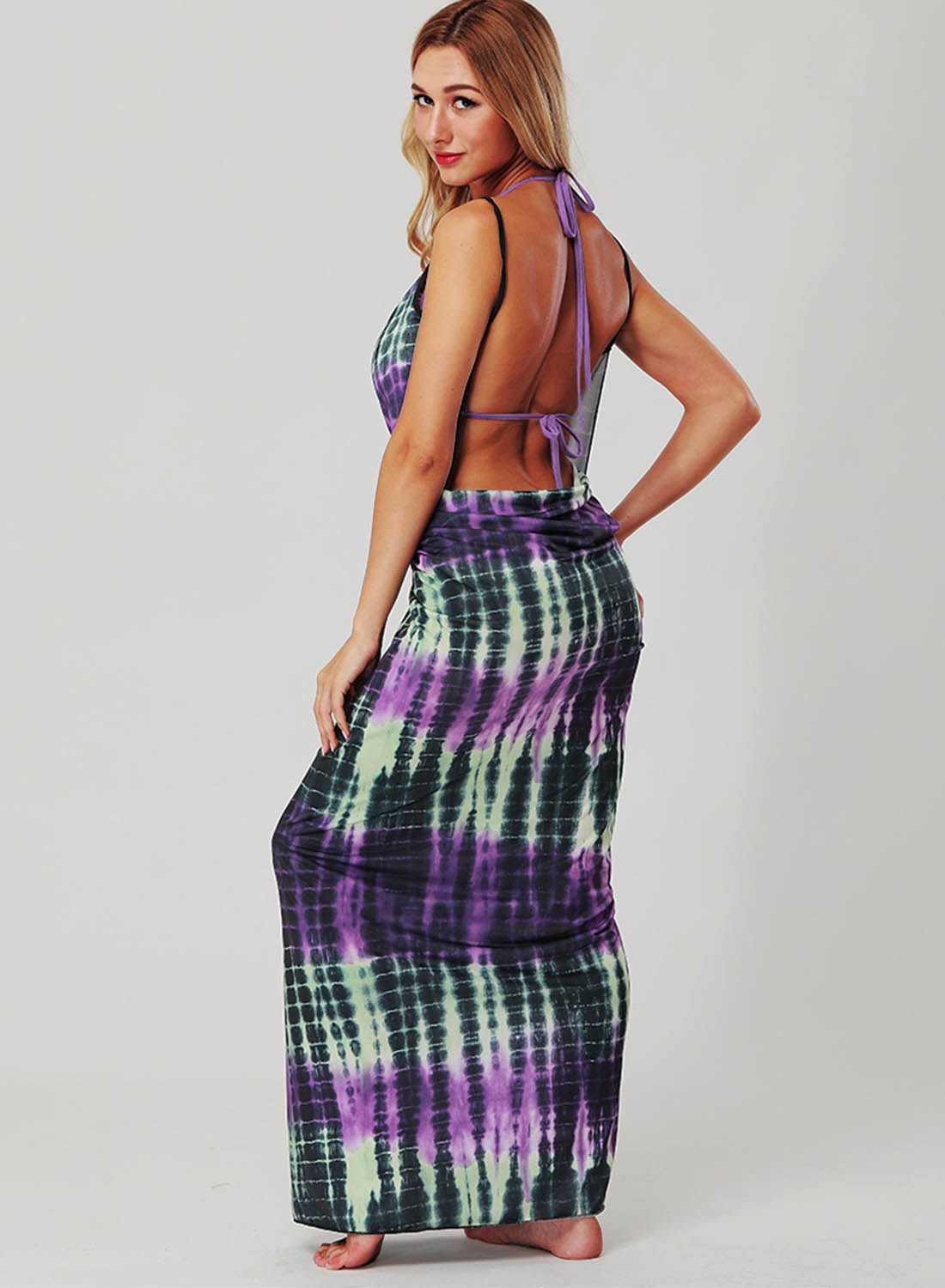 Women's Maxi Dress Color Block Shift Sleeveless Spaghetti Wrap Summer Casual Beach Maxi Dress