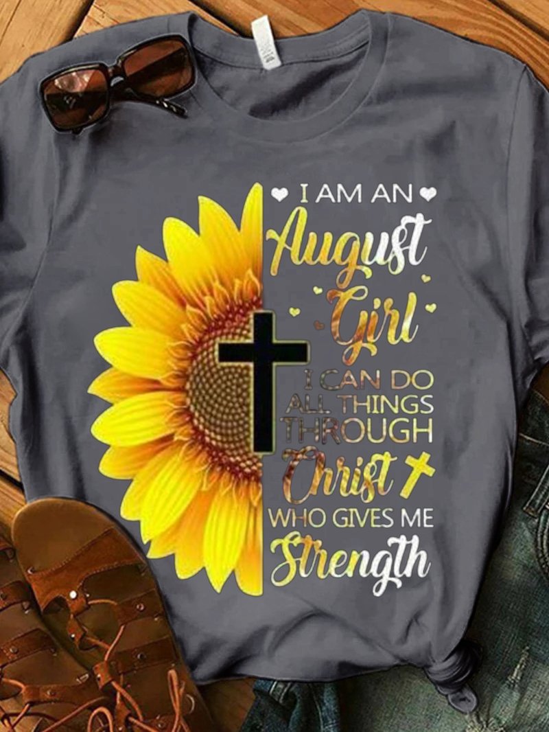 Sunflower Cross Girl Printed Short-sleeved T-shirt