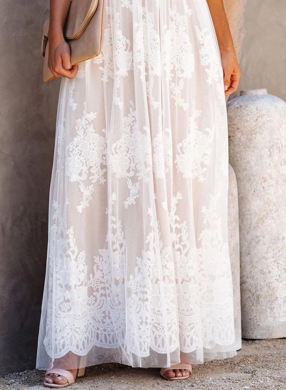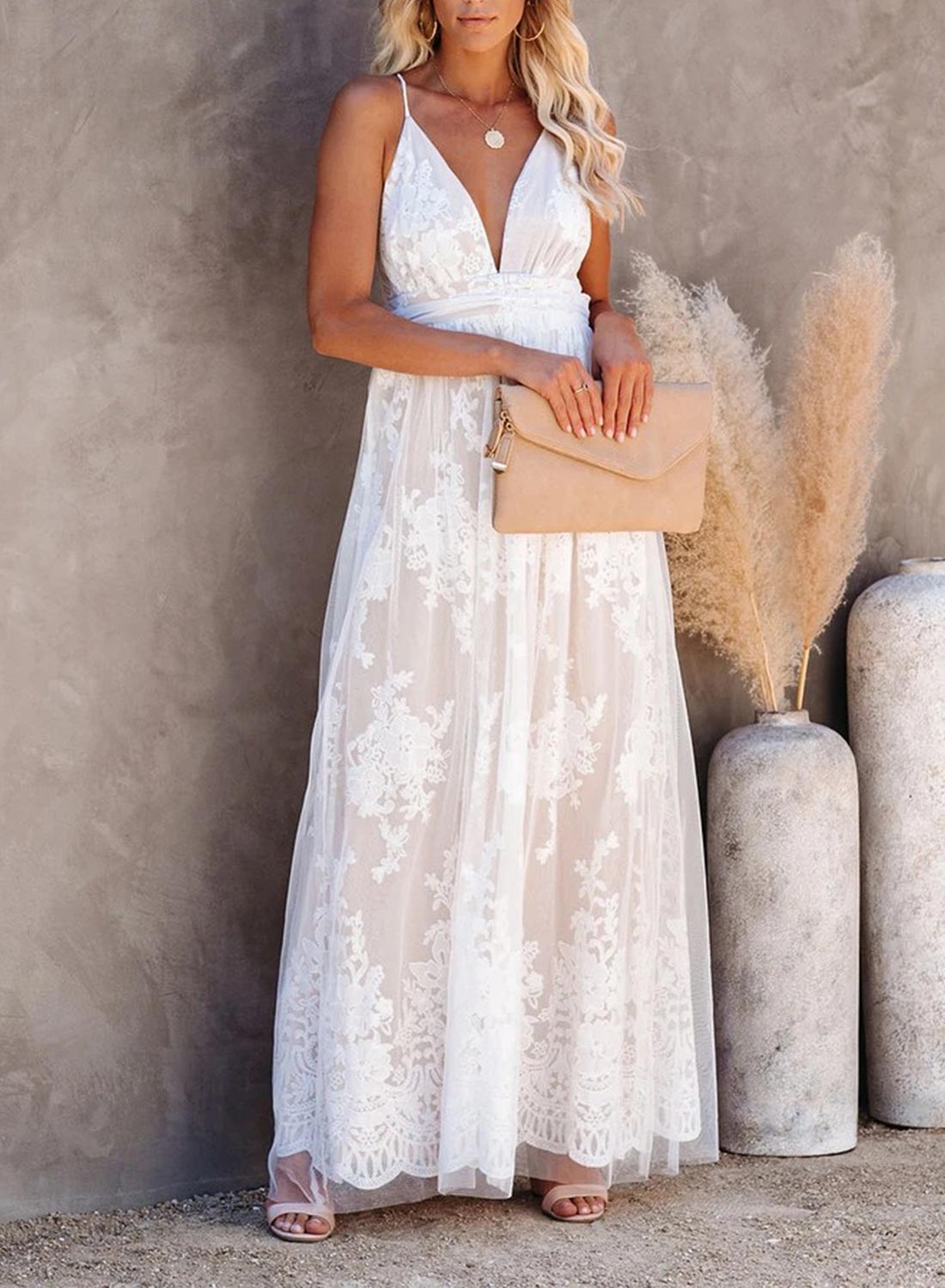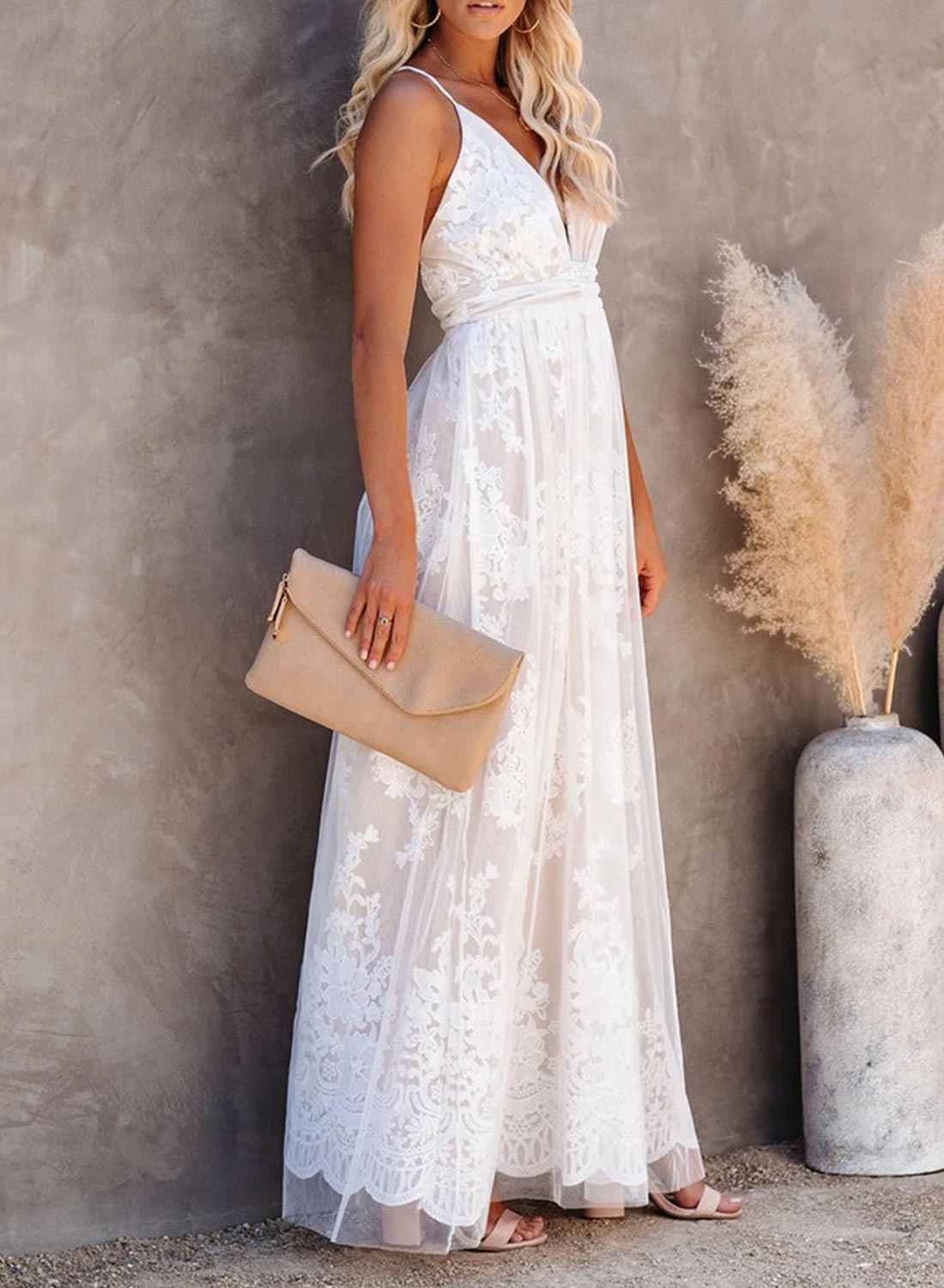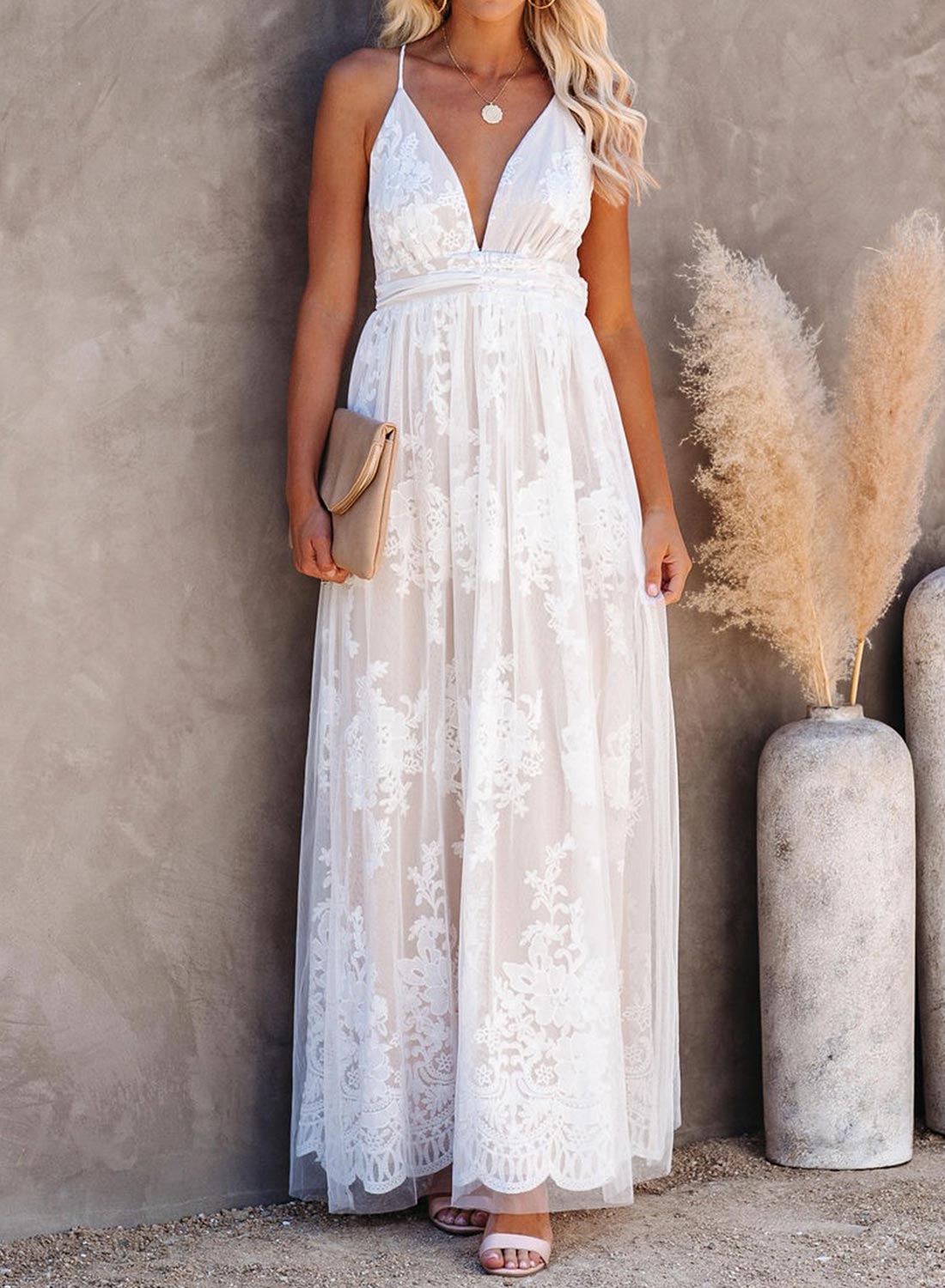 V-Neck Lace Open Back Wedding Maxi Dress