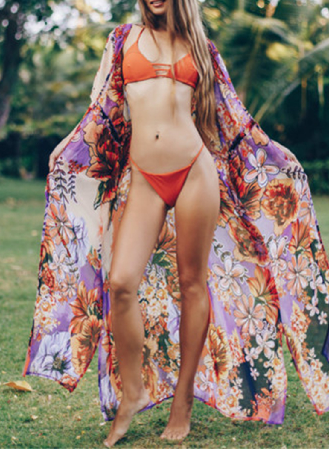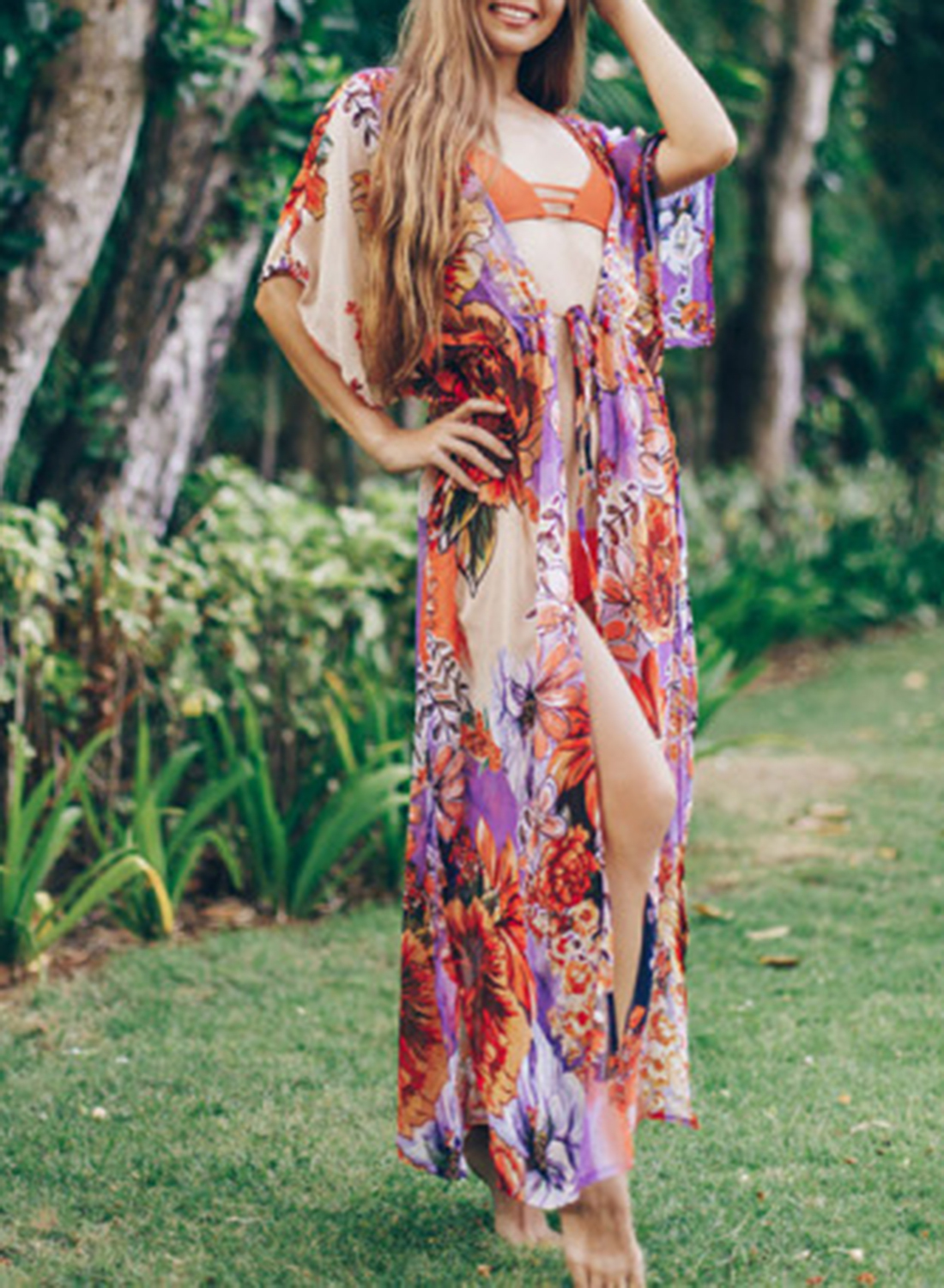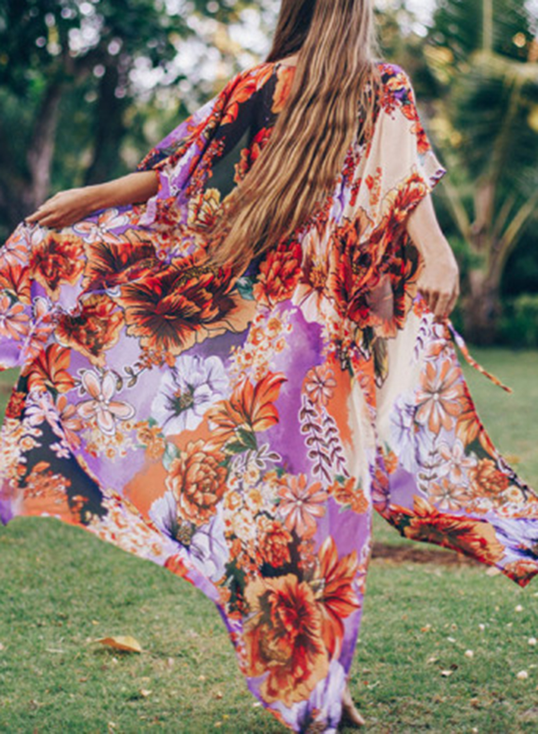 Women's Maxi Dress Floral Color Block A-line Half Sleeve V Neck Knot Casual Beach Maxi Dress