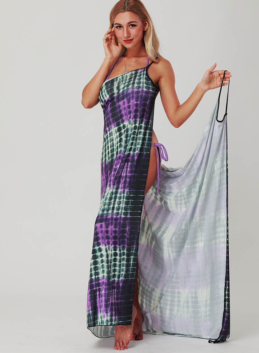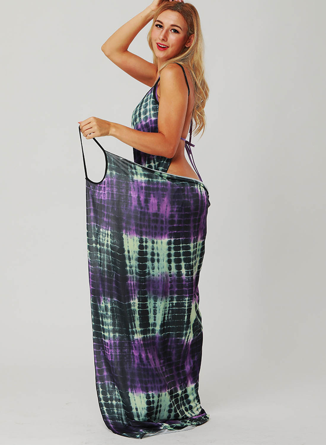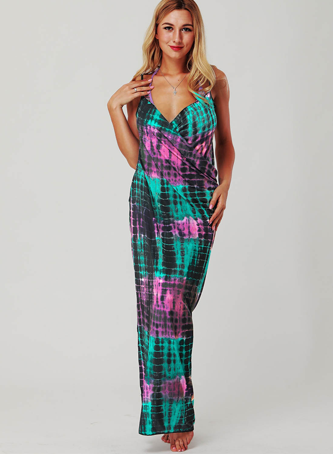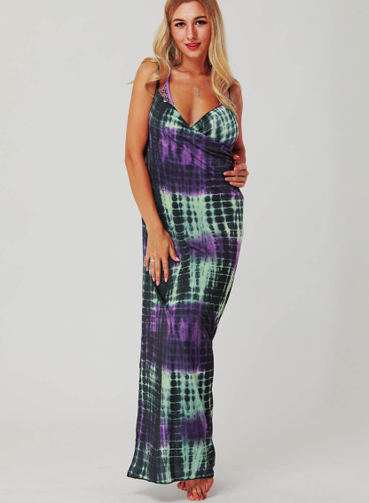 Women's Maxi Dress Color Block Shift Sleeveless Spaghetti Wrap Summer Casual Beach Maxi Dress